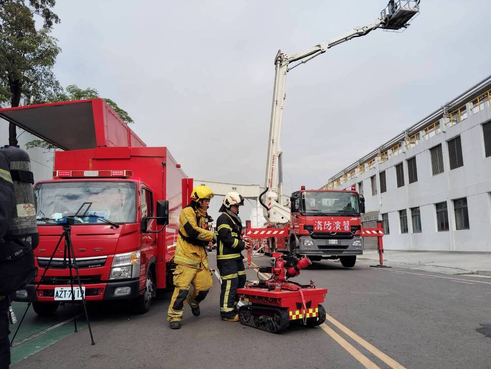 另外,演練項目也特別著重跨單位搶救石化廠房火災的橫向聯繫,包含火場管制、事故安全應變及人命救助等。而現場特別引人注目的是消防機器人的部署,在面對輻射高溫與化學品危害之高風險火場環境下,機器人能代替消防員進入高熱、濃煙區域進行有效偵查及滅火,大幅提升災害搶救效能,並降低消防人員傷亡風險。