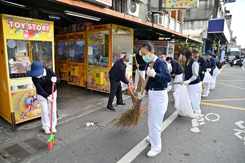 慈濟志工此次認領的街道為五結路二段,參與清掃工作有20人左右,整排穿著「藍天白雲」制服的慈濟人,分工合作,逐一將分配的區域打掃乾淨;讓五結鄉親共同迎接乾淨舒適的美好新年。