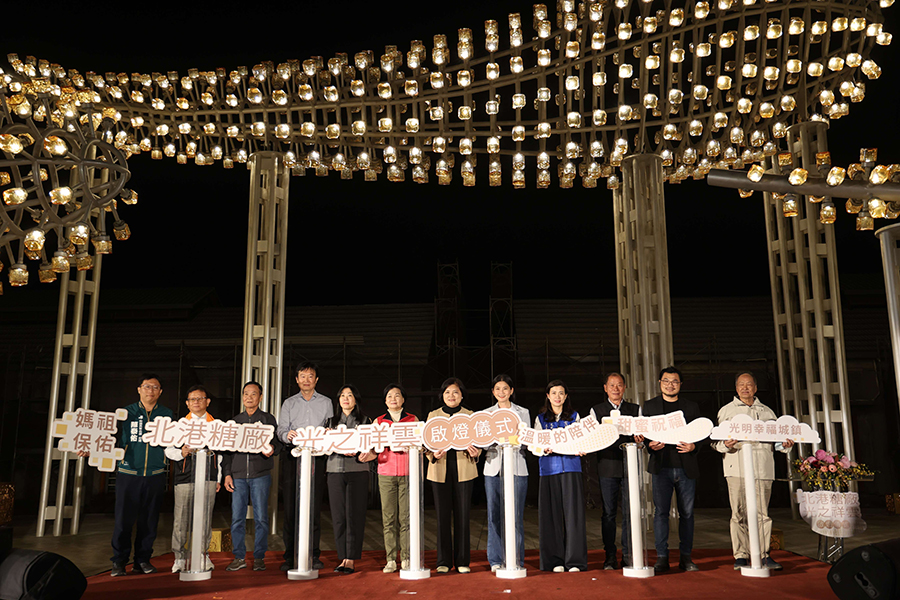 【記者雷琇雯雲林報導】雲林縣政府推動北港糖廠歷史場域活化,「北港1911好庫文化產業園區」大型藝術裝置《光之祥雲》日前正式啟燈,作品結合百年糖業文化與北港媽祖信仰意象,並納入2026北港燈會整體規劃,為老糖廠注入嶄新文化生命。