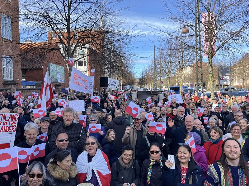 由格陵蘭(Greenland)社群發起的遊行18日中午在丹麥首都哥本哈根與阿胡斯(Aarhus)、阿爾堡(Aalborg)、奧登斯(Odense)以及格陵蘭首府努克(Nuuk)等地同步進行,盼將格陵蘭人的心聲傳達給美國與世界。
