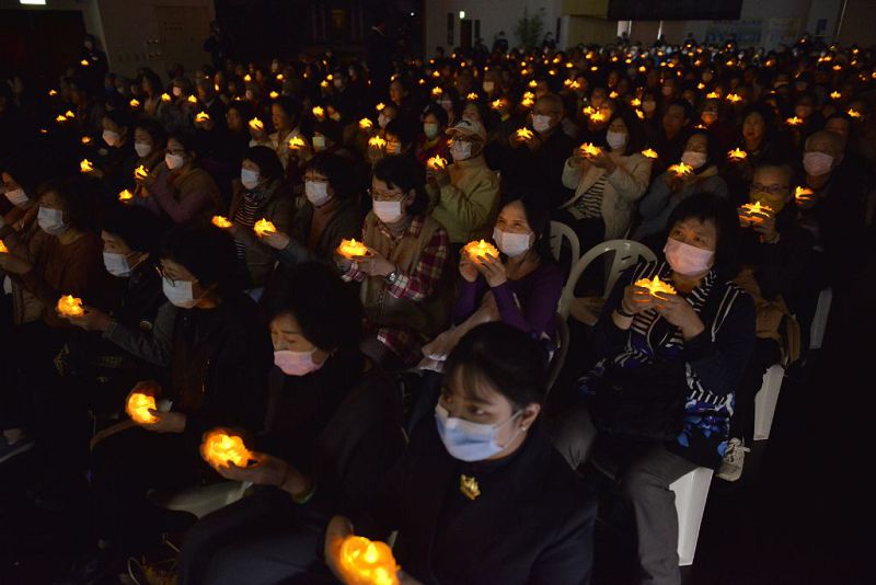 眾人虔誠祈禱天下平安,將虔誠的心念上達諸佛諸天聽。