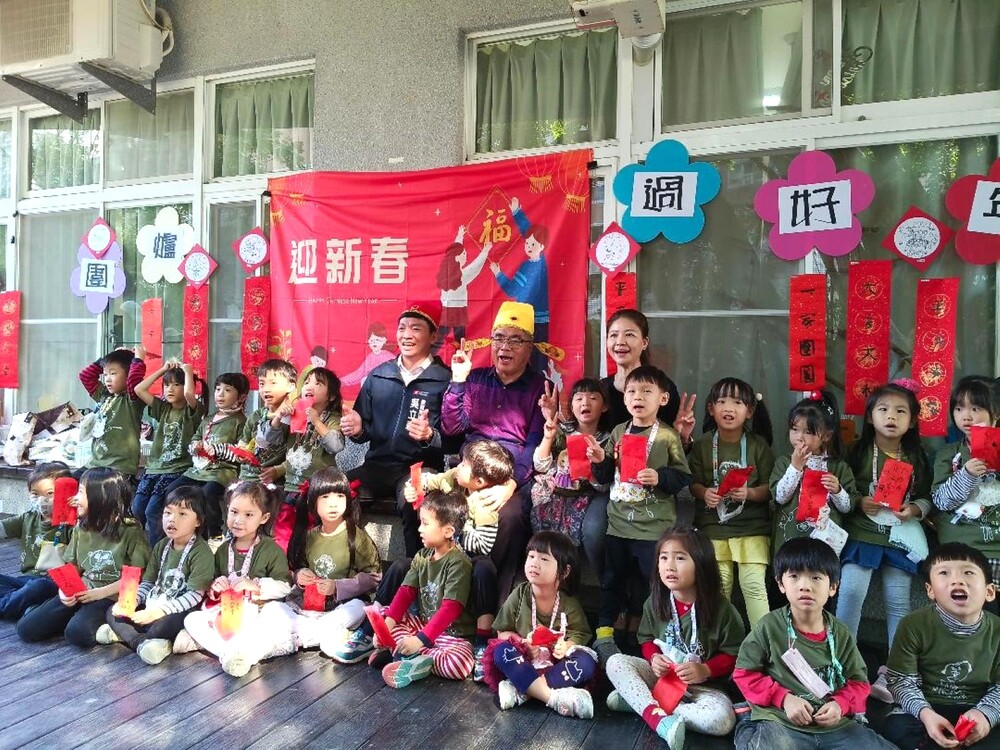 吳立森並與河堤國小校長杜昌霖,一同戴上象徵喜氣的財神帽,逐一發送紅包給每位幼兒,孩童們高興的說出準備好的吉祥話,如新年快樂、年年有餘、平安健康、步步高升等祝福金句,而紅包皆由孩子於課堂中,親手製作並彩繪,老師再放入金幣巧克力,小朋友收到後迫不及待地打開,臉上洋溢純真的喜悅與笑容。