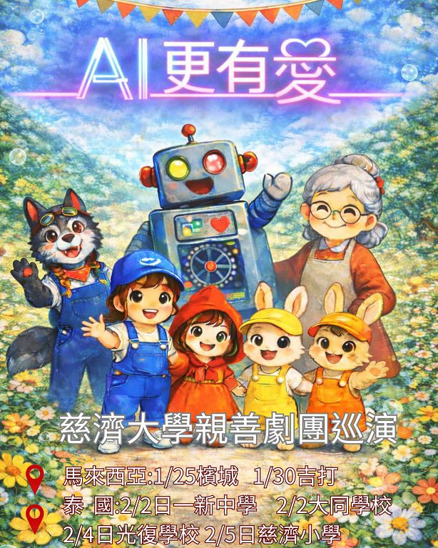 親善劇團「AI更有愛」即將前往馬來西亞檳城靜思堂、吉打靜思堂與泰國清邁慈濟學校、一新中學、光復學校等地進行巡演,並走入在地醫療機構與教育中心見習。這趟為期14天的國際志工行動,從城市到偏鄉、從醫療到教育,讓學生在舞台之外,實踐真正的國際關懷。