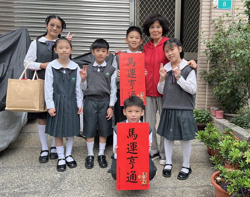 除了清掃環境,學生們更化身為「新春福氣小天使」。孩子們身著整齊制服,以恭敬的雙手,將一張張充滿祝福的紅聯奉送給鄰里長輩。起初因為靦腆而不敢直視對方,但經過一次次的練習與嘗試,終於能克服緊張、大方送上祝福。透過向長輩問好、說吉祥話,孩子練習開口說愛,將慈濟「感恩、尊重、愛」的精神化為溫暖互動,讓社區充滿人情味。這份愛的互動正是新春最暖的禮物。