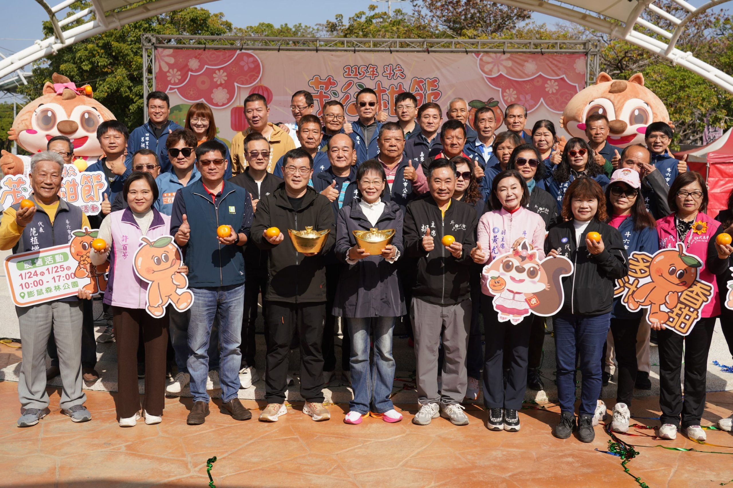 【記者蔡鳳敏雲林報導】「115年斗六茂谷柑節暨年貨市集活動」於1月24、25日在斗六膨鼠森林公園熱鬧登場,展售斗六各產銷班果農辛勤栽種的「馬上幸福」茂谷柑,並有在地優質農特產品業者及多家年貨攤商共同設攤展售,誠摯邀請各界民眾攜家帶眷挑選寓意旺財圓滿的茂谷柑伴手禮,讓逐日濃烈的年味充滿幸福感。副縣長謝淑亞與市長林聖爵及貴賓均到場共襄盛舉、熱鬧滾滾。