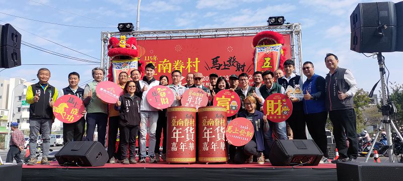 【記者鄭永德台南報導】迎接馬年到來,台南市府於115年1月23日至1月25日在永康區探索教育公園及永華路首度舉辦「臺南眷村年貨嘉年華」,24日舉行開幕式,現場嘉賓雲集,由舞龍舞獅表演正式揭開本次活動的序幕!