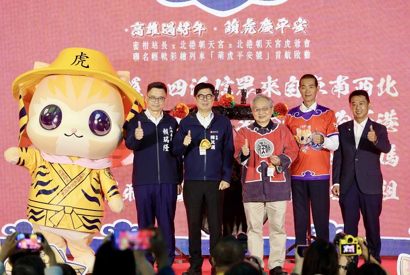 陳其邁也提到高雄輕軌2025年全年總運量,突破1333萬人次,創下歷史新高。對於未來達成捷運日運量20萬人次的目標,其深具信心。他同時說,高雄大眾運輸系統,已成為市民最信賴的綠色交通選擇,不僅準點便捷,在各項大型活動疏運上,更全力配合,透過這次與虎爺聯手,將為市民在新年載來滿滿福氣。