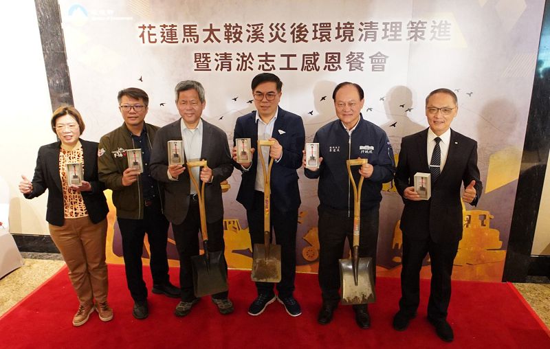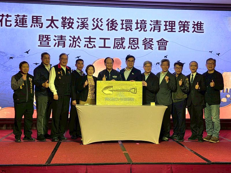 「謝謝大家,感謝超人們。」環境部1月25日在花蓮舉辦「花蓮馬太鞍溪災後環境清理暨清淤志工感恩餐會」,表揚並頒發紀念獎座及感謝狀給120個公私機關與團體,與會者約400位。行政院政務委員季連成、環境部長彭啟明向每一位辛勞奉獻的「超人」、「勇士」們表達最誠摯的感謝與敬意。活動融入原民文化,以豐年祭最高禮遇拉開序幕。