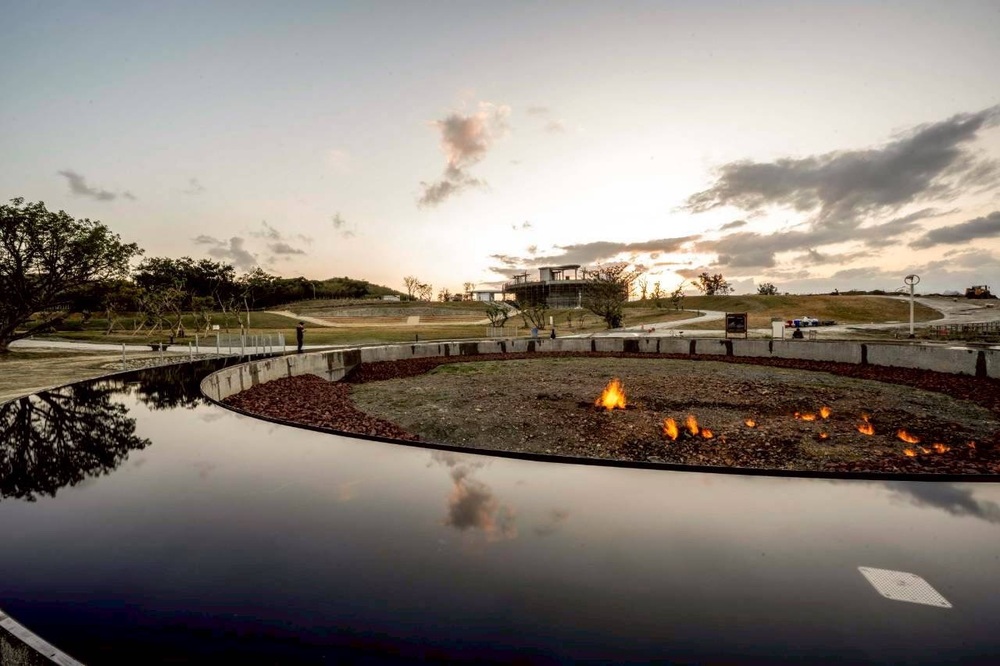 屏東縣政府表示,出火地質公園占地約2.9公頃,歷經整體規劃後,不僅完整保留自然出火景觀,並新設環形水池、生態密林區與觀星空間,結合夜間燈光設計,呈現日夜皆美的嶄新風貌。