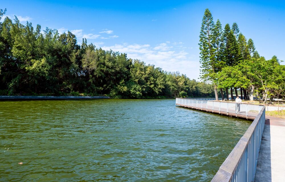 海岸及資源循環工程處表示,後湖溪全長約1.3公里,市府已完成約900公尺河道清淤,並改善既有河堤與水域安全,設置景觀平台、湖畔咖啡屋、淋浴間、親子廁所及約600公尺堤頂自行車道,串聯海螺文化館與永安漁港,提供全時段的親水休閒空間。園區北側新屋事業性海堤則採生態工法興建約940公尺拋石護岸,透過多孔隙結構吸收浪能,兼顧海岸防災、生態棲地與觀海視野,為永安漁港周邊打造更安全且具永續價值的濱海環境。