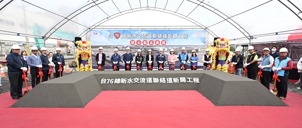 【記者鄭惠珠埔鹽報導】配合東西向快速公路台76線(原漢寶草屯線)台19線以西路段延伸工程計畫,並因應埔鹽鄉發展帶來的交通需求,縣府積極向中央爭取經費,推動「台76線新水交流道聯絡道新闢工程」。30日在台電埔鹽變電所前舉行開工動土典禮,彰化縣長王惠美、交通部政務次長陳彥伯等貴賓與會。總工程經費5億7,145萬9,000元(中央補助4億6,288萬2,000元,縣府自籌1億857萬7,000元),工期720日曆天,預計於117年2月底前完工。另外為配合台76延伸工程今年底通車期程,本工程新水交流道匝道至好金路路段預計於今年10月先行完工開放通行。