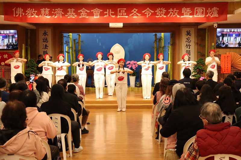 活動中特地播放《2025慈濟慈善大事記》與《慈濟一甲子慈悲接力》影片,回顧慈濟慈善足跡,並以「點傳心燈」祈福儀式象徵心手相連、善念共振。午間圍爐時刻,36位慈濟志工歡喜端菜上桌揭開序幕,佳餚伴隨著音樂饗宴與四階段摸彩活動輪番登場,妙音傳法、日本舞踊、志玄歌仔戲等節目交織出熱鬧又溫馨的氛圍。