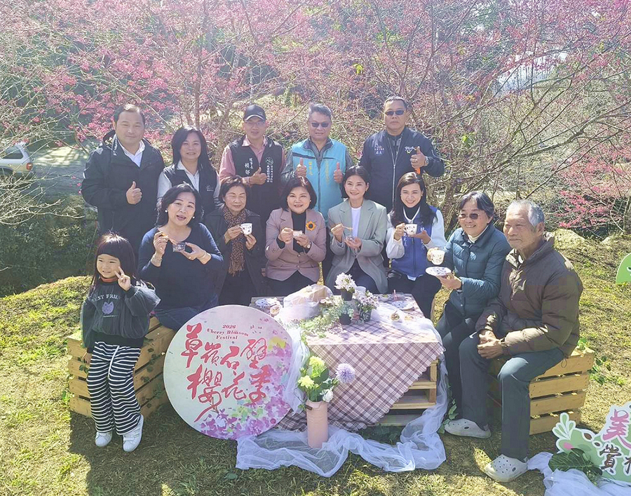張麗善指出,今年特別規劃「美人谷環線」賞櫻步行路線,串聯東碧山莊、蘇家農場、觀星坪、仙夷農場及九芎神木等景點,沿途櫻花與山景交織,適合遊客放慢腳步、細細品味山林春色。