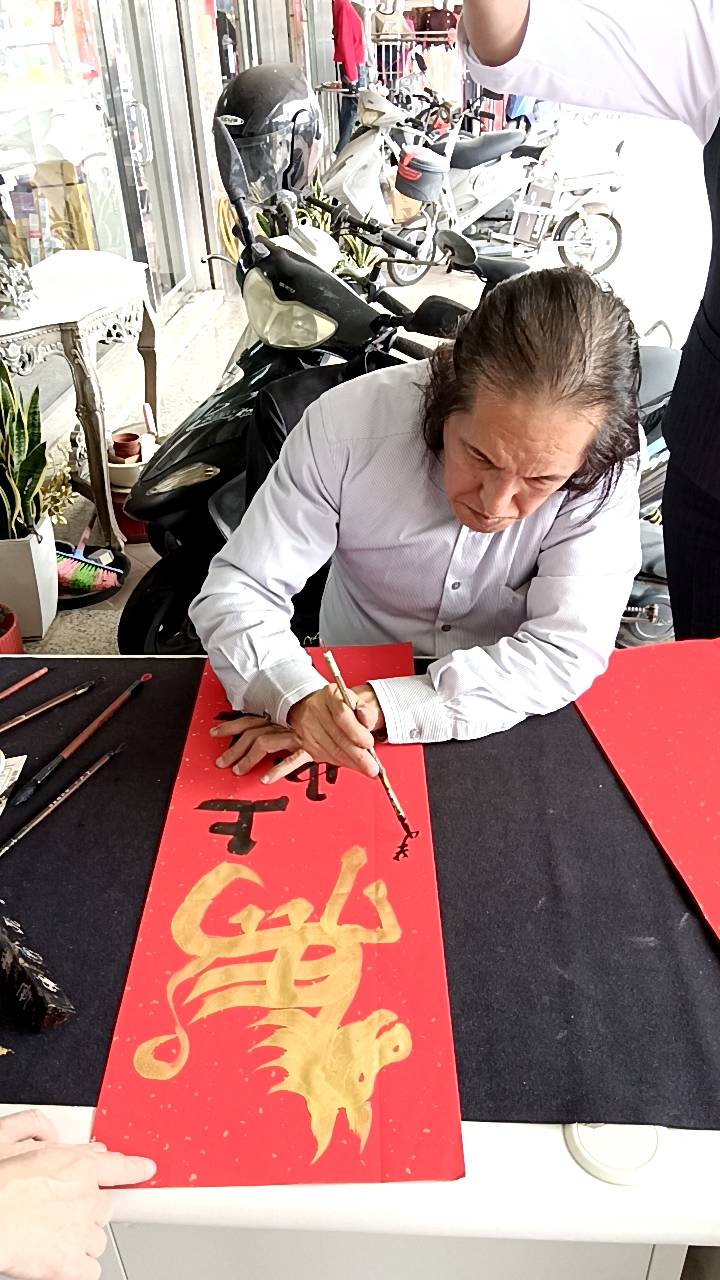 不論在台或對岸均享名氣的書法家蔡篤釗,在今年非常熱門,近期間就受邀請揮毫春聯活動多達接近三十場,蔡篤釗於去年受到沙鹿區鹿寮成衣商圈的有巢氏房屋加盟店店長陳俊榮首度邀請到場揮毫免費致贈鄉親,不但獲得好評與肯定,未能索取的民眾向店長反映,應再舉辦這項揮毫活動,店長因此決定今年二度邀請蔡老師到場揮毫,並獲得首肯。