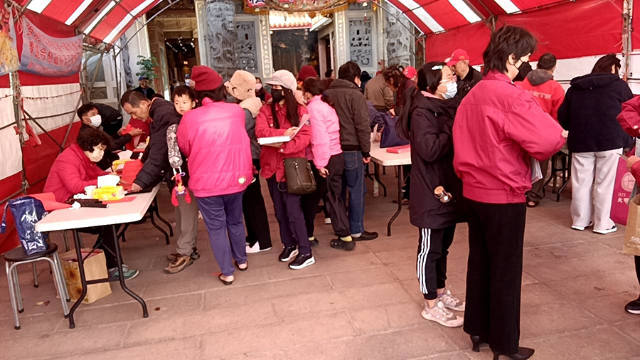 圖一:廟前擠滿索取春聯揮毫的民眾。