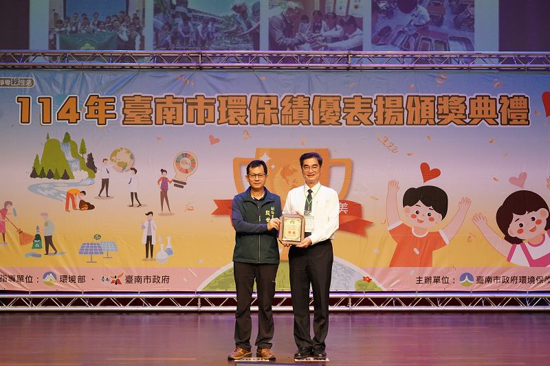 114年臺南市政府「環保績優表揚典禮」隆重登場,表揚長期投入環境保護與永續行動的學校、團體、企業及志工夥伴。臺南慈濟高中國小部(以下簡稱臺南慈小)以系統化推動校園環境教育、深耕永續實踐的卓越成果,獲得環境部肯定,成功取得第二面綠旗推動環境教育「臺美生態綠旗」認證;同時,學校環境教育推動核心成員顏秀雯主任亦於本次遴選中榮獲環境教育績優(個人組優等),展現校園團隊與專業領航並進的亮眼表現。