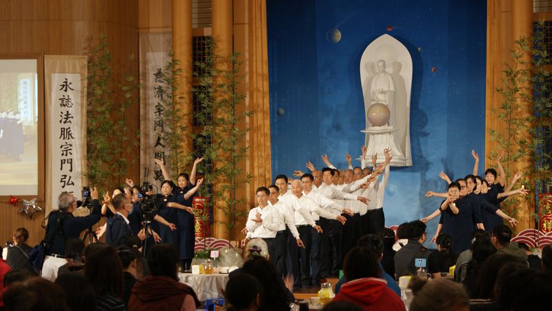 社區媽媽舞蹈班〈大團圓〉音樂響起「人人在門前貼春聯,手牽手心團圓,大團圓、大團圓,恭喜恭喜樂團圓」;師兄組成的「千手觀音」,更讓人攝心與動容,〈牽手世界〉音樂響起「因為慈悲讓生命寬闊,因為感恩讓生命歡喜」,共同匯聚愛的力量,讓祝福就在你的身邊。