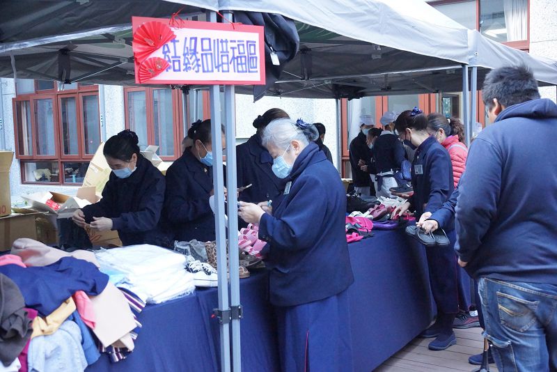 惜福結緣品區人潮絡繹不絕,志工細心協助照顧戶挑選衣物與生活用品。一位案主先生試穿長袖針織上衣,尺寸合身,冷冽的風吹來,立刻感受到暖意。簡單的一件衣服,卻帶來安心與幸福。