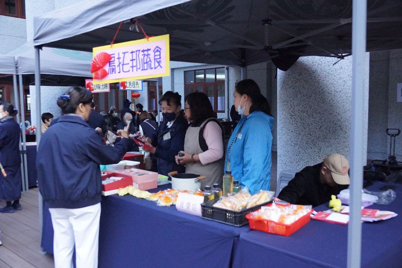 其中,「大寮蔬食」攤位特別吸引目光。志工黃雪惠帶領團隊準備豆乾、芋頭巧、白木耳蓮子等養生點心,兼顧蛋白質與健康需求,貼心考量照顧戶的身體狀況,避免空腹等待造成不適。小小的點心,蘊含滿滿用心,讓照顧戶安心參與整場活動。
