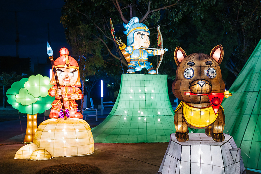 財團法人台中市七將軍廟董事長李淵全表示,忠義護鄉土燈組以Q版七將軍爺千歲與義犬為設計主軸,透過可愛又不失威武的造型,詮釋七將軍爺忠義護民、守護家園的精神意象。