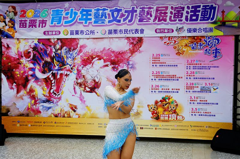 【記者林盈焜羅玉女苗栗報導】苗栗市公所鑑於去年成功辦理共計60場次「2025苗栗市青少年藝文才藝展演活動」,為在地青年藝文團體打造展現才華與自我價值的重要舞台,今年特別加碼擴大至80場次辦理。首場活動於11日上午在苗栗市嘉盛、嘉新活動中心熱鬧登場,邀請藝達舞苑與優樂合唱團精彩演出,並結合苗栗市2026年社區(火旁)龍共同出師,熱鬧揭開年度序幕。