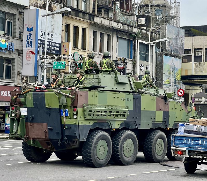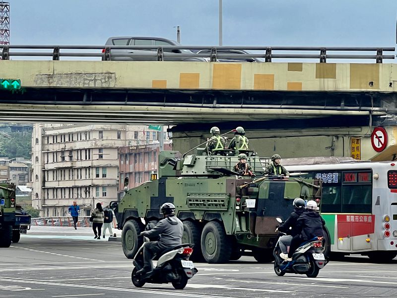 基隆市區最寬闊的忠一路,是大遊行必經的大道。公車循環站在東岸停車場前的忠一路旁,因而公車和各種車輛都有,12日上午將近10點時,兩輛軍車來到大道上,草綠色裝甲車正好遇上紅燈,和其他車輛遵守交通規則,停止前進,綠燈後繼續前行。