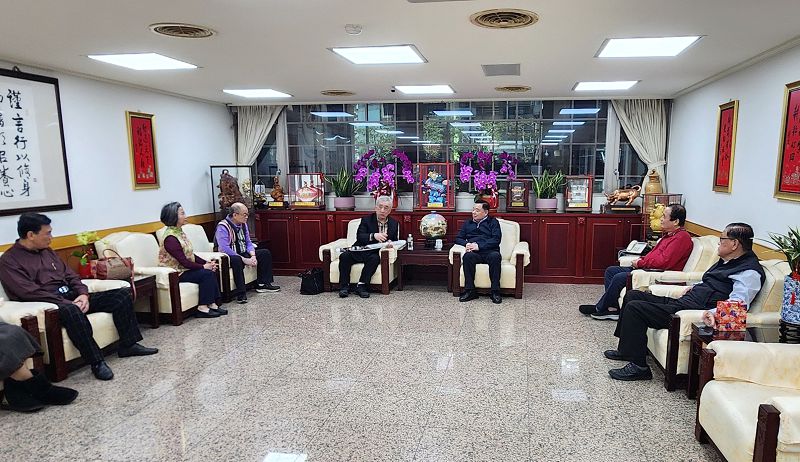 【記者鍾陽正桃園報導】臺灣導報總社長林文雄與董事長陳麗櫻於13日上午專程北上,在前市議員蘇家明、全國村里長聯誼會榮譽總會長郭雲輝、豐群事業機構董事長邱垂境、副社長吳惠民、桃園特派徐玉英等人的陪同下,前往桃園市議會拜會議長邱奕勝,除向議長表達誠摯祝福與感謝外,也就在地媒體報導發展議題深入交換意見,相談融洽溫馨。邱議長亦贈送每位成員紀念品及合照本。