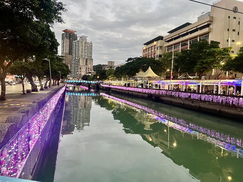 謝國樑市長從海洋廣場開始,裝置彩燈,更要求沿街樓房店面,延伸到田寮河和生肖橋,整體亮麗起來!