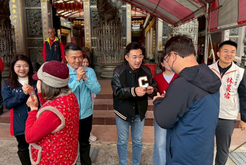 走春行程,江啟臣抵達梧棲浩天宮時,現場由前立委蔡壁如、台中市議員陳廷秀以及浩天宮主委王經綻熱情相迎。江副院長在受訪時表示,非常感謝台中鄉親的熱情,對於粉絲注意到他送出別針並立刻補上「幸運小物」的舉動感到既驚喜又感動。