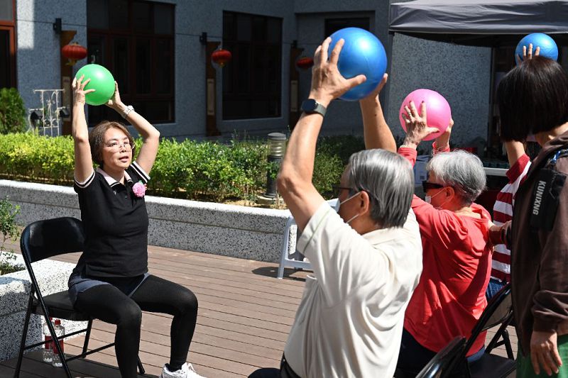 二樓教室內笑聲不斷,舞龍舞獅團正賣力彩排。志工黃春鳳一家格外醒目,她扮演喜婆,先生化身財神爺,今年更有雙胞胎兒子加入舞獅行列。春鳳感動表示,孩子平日工作在外,特地返鄉參與,與志工子女一同舞動新春,難得又溫馨。