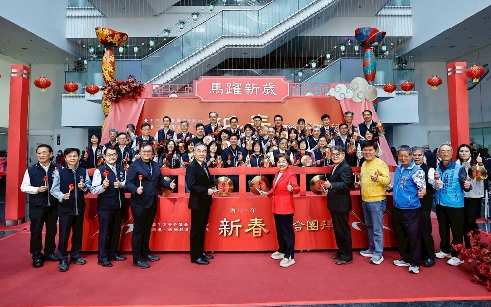 【記者彭勝郎台中報導】敲響鑼聲好運到,台中市政府於23日開工首日,新春第一場大型活動創意齊發。市府聯合團拜以「駿馬奔新歲,攜手譜新章」為主軸,期許各項市政如同駿馬之勢,持續蓄勁前行。市長盧秀燕因故不克出席,特別委請副市長黃國榮代表向大家拜年,並代讀新春致詞,向所有市民道賀。