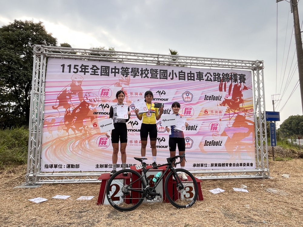 大村國中自由車隊最終累計奪下3金、2銀、2銅,並榮獲國男團體總錦標第一名。國二選手林昊辰在個人計時賽中摘金,展現節奏掌控能力;國二選手陳湘蓉與施普章於公路賽中雙雙奪冠,並在個人計時賽中各獲銀牌肯定。林昊辰及國三女選手陳巧臻亦於激烈競爭中奪銅站上頒獎台,盡顯團隊實力。