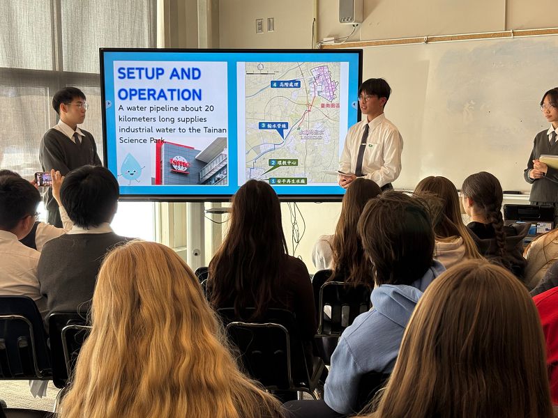 在SDGs議題交流中,雙方學生以SDGs目標6「淨水與衛生」及SDGs目標11「永續城鄉」為主軸進行發表。臺南慈中學生介紹臺南安平水資源回收中心與水交社文化園區,辛辛那提學生則分享當地水資源處理方式與OTR城市更新案例。王同學表示:「透過彼此的分享,我發現不同城市雖然背景不同,但都在用自己的方式實踐永續發展。」
