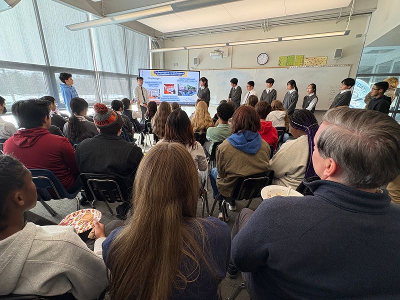 雪假結束後,臺南慈中師生們前往Cincinnati Country Day School(CCDS)體驗美國校園生活。學生們實地參與不同教室跑班的上課模式,感受彈性課程安排的學習氛圍,體會到不同教育制度的特色。此外,學生們也於CCDS集會時間介紹「一日五善」理念,分享臺灣在日常生活中落實的環保行動。