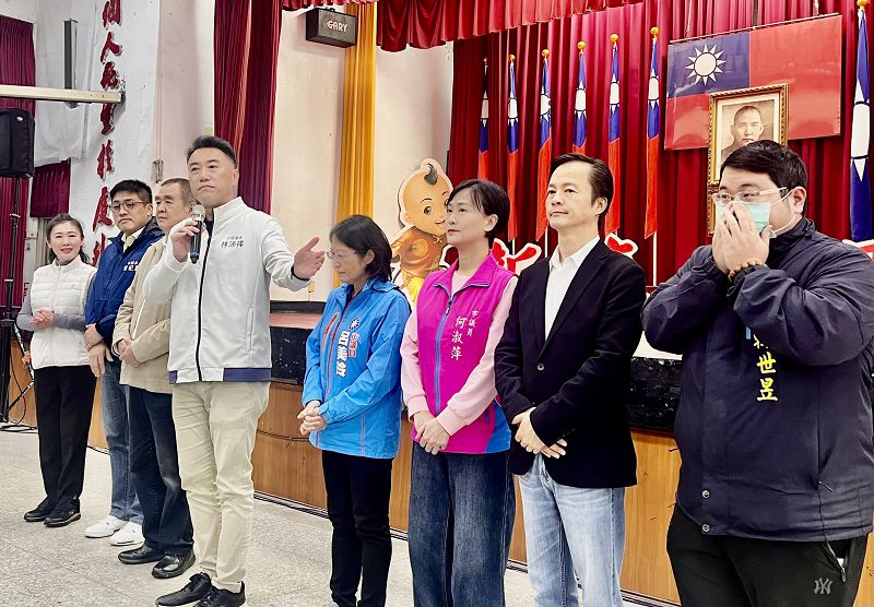 市長謝國樑因上班時間未便參加,立法院黨團書記長也是市黨部主委林沛祥主持團拜,天氣轉涼又下雨,但禮堂滿座,場面熱鬧。林沛祥主委邀請參加團拜的市議員蔡旺璉、曾紀嚴、鄭愷玲、呂美玲、何淑萍、藍敏煌、韓世昱、郭美秀等向大家拜年。