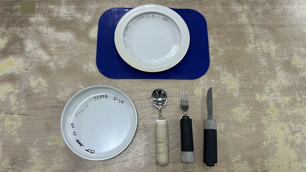 第四則是「輔具應用」,例如進食時使用握把加粗的餐具、使用止滑墊固定碗盤;利用邊緣加高餐盤,防止食物掉出。穿衣時,用鈕扣或拉鍊輔助器;穿鞋襪時使用穿襪器或鞋拔;取物時運用長柄取物夾,夾取高處櫃子或地上的物品;洗澡時善用長柄刷或洗澡椅;將吸盤式清潔刷固定於水槽,方便清潔;轉移位時利用移位腰帶或移位板,減輕照顧者負擔又安全;行走時使用行動輔具(助行器、單拐、四腳拐等),以確保室內外行走安全。