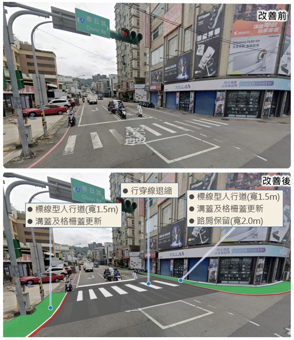 圖說2:健行路(春日路~大業路二段)新設標線人行道示意圖。