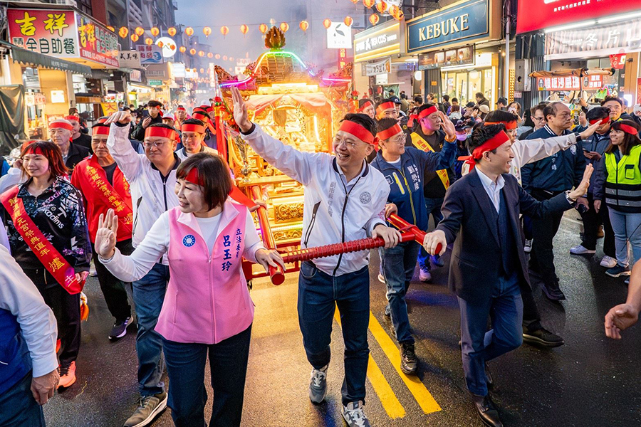 【記者鍾陽正桃園報導】桃園市副市長蘇俊賓日前在立法委員呂玉玲、總統府副秘書長何志偉、市議員徐玉樹、劉熒隆、張肇良、市府客家局長范姜泰基、農業局長陳冠義、龍潭區長鄧昱綵、環管處長張書豪、龍元宮主任委員林錦浪等人陪同下,前往龍潭區出席「春遊大龍門-2026龍潭接財神」遶境活動。