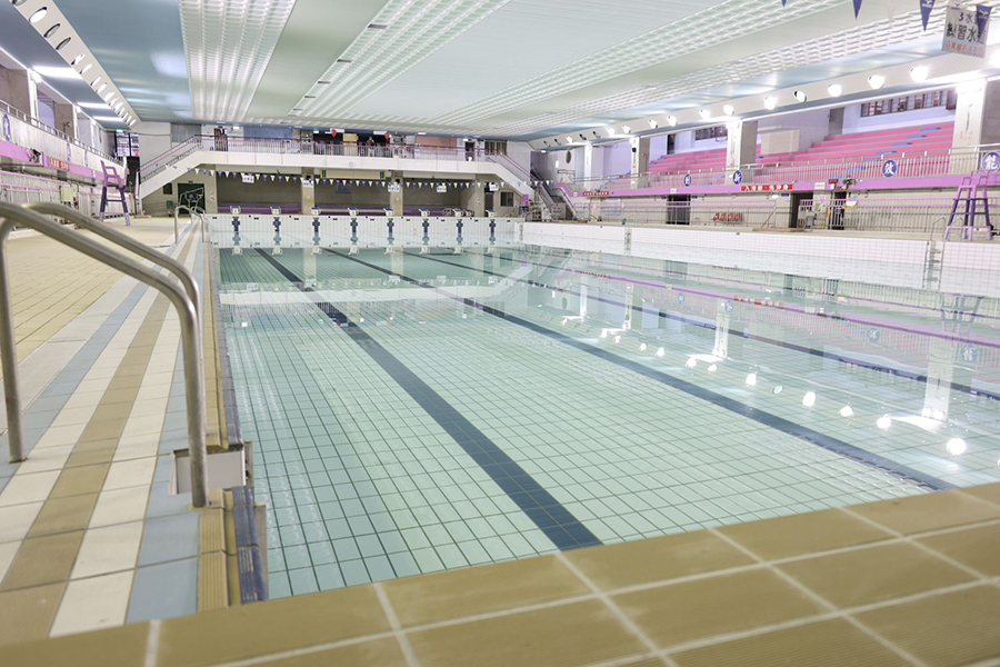 基隆市立體育場林柏樹場長表示,這次修繕工程著重於場館結構補強與使用安全性,大幅改善場館體質,包括地下室管線混凝土裂縫灌注與補強、泳池玻璃窗拆除封閉,以及為了解決長期滲透漏水的問題,在地下二樓地坪增設排水溝與不銹鋼板;內部設施部分,進行觀眾席磁磚修補、並大幅提升泳池側面照明亮度,去除市立游泳池既往幽暗的印象,更在泳池新增跳水台,以符合未來舉辦中小運選拔等賽事標準,讓場館機能更加完善。