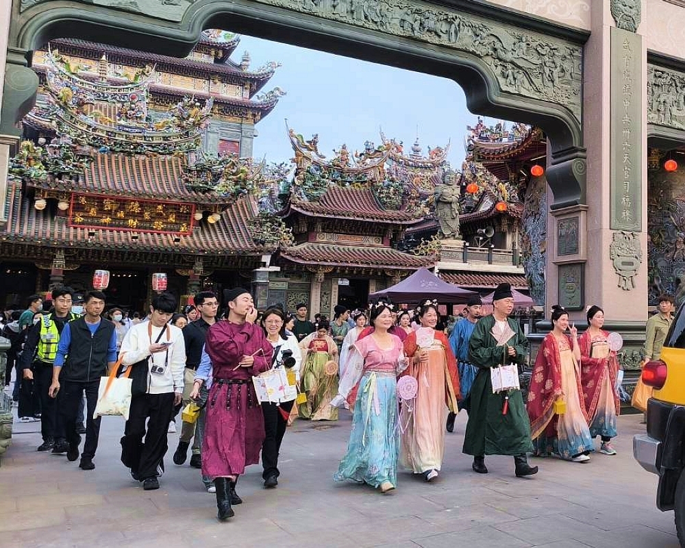 主委林安樂指出,北港武德宮宮名寓意深遠,民間傳說唐高祖李淵為財神趙公明靈託轉世,因而締造富庶昌盛的盛唐王朝。延續這份文化想像,「武德新唐社」於去年上元節正式成立,以唐服文化為核心,結合武德宮建築美學與燈會意象,重現上元佳節仕女提燈、遊街賞燈的盛景,讓傳統服飾與宗教場域交織出跨越時空的文化饗宴。