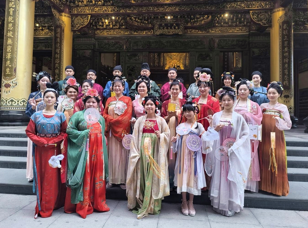 武德新唐社週年雅集 身著華麗唐服的仕女與雅士穿梭於祖廟殿堂與古鎮街巷間 展現盛唐繁華風