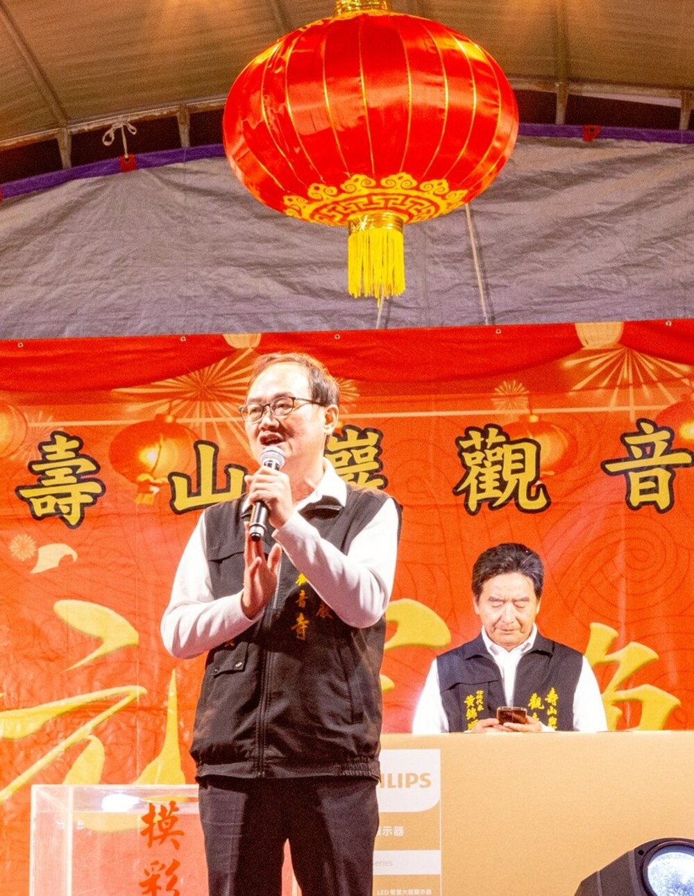 活動尾聲,壽山巖觀音寺董事長林明義登台致詞,感謝地方鄉親與善信大德多年來對壽山巖各項活動與公益事務的支持。他表示,壽山巖觀音寺長期投入公益關懷、文化推廣與社區服務,期盼讓信仰的慈悲力量落實於行動,持續為地方注入溫暖與希望。隨後,他在滿場鄉親見證下正式宣布,將投入參選桃園市議員(龜山區)。