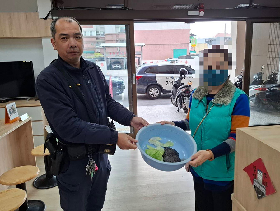 豐原區一名廖姓女子飼養4年多的愛龜「錢錢」日前意外走失,廖女遍尋不著,心急如焚之下遂向警方報案求助。豐原警分局合作派出所警員張存馥,於日前接獲50多歲廖姓女子報案指稱,其飼養多年的愛龜「錢錢」不慎走失,焦急萬分,經了解,廖女家住在豐原區大明路,當日下午趁天氣晴朗,將「錢錢」放置門前曬太陽,卻因一時疏忽誤將大門關上,導致牠無法返回屋內,只能在門口徘徊。廖女表示,「錢錢」如同家人般陪伴她多年,牠的背甲線條圓潤,警方受理後,立即調閱周邊監視器畫面,並展開逐戶查訪,終於在翌日上午順利尋回「錢錢」,員警更貼心餵食照料,協助牠恢復精神。廖女見愛龜失而復得,懸著的一顆心終於放下,感動不已,過程中,遂向隔壁早餐店商借生菜餵食。只見牠緩緩伸出長頸進食,精神逐漸恢復,模樣逗趣,讓在場員警也會心一笑,所長陳盈延表示,民眾如拾獲走失動物,切勿自行長期留置或任意處置,應儘速通報動物保護機關或撥打1999市民專線,同時也提醒飼主,讓寵物外出活動時應加強看顧與防護措施,共同維護社區安全與友善動物環境。(圖;記者馬淑娟/文:記者王雲彬)
