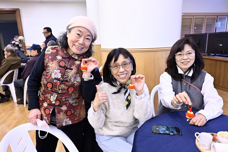 活動另一亮點為DIY「平安福慧燈」。志工引導大家以紅黃毛根串連吊飾,製作隨身光明燈。雖初時略顯生疏,但在耐心指導下,眾人逐步完成紅咚咚的福慧燈,象徵新年光明與智慧。