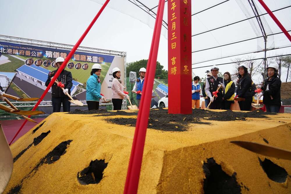北港鎮府番公墓殯儀館、禮廳及靈堂新建工動土典禮,由張麗善縣長、北港鎮長蕭美文主持,議員黃文祥、北港鎮代會主席黃美蘭、民政處長蕭德恕及各界貴賓共同祈福動土,場面莊嚴隆重。