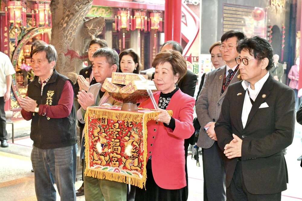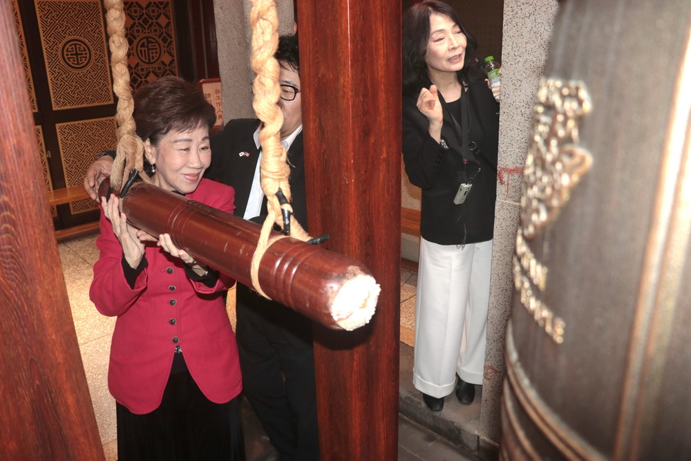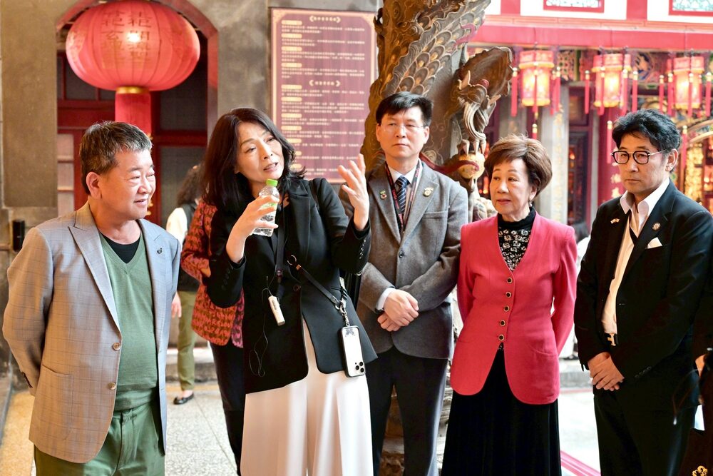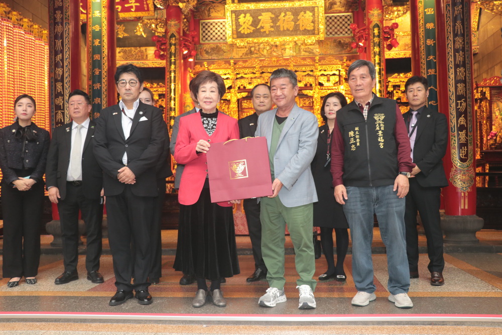 【記者鍾陽正桃園報導】前副總統呂秀蓮偕同韓國安宰宇導演暨韓國影視一行10人於2日下午前往桃園大廟景福宮參香祈福,受到主任委員簡征潭、副主委陳正忠暨全體理監事陪同接待,以表達誠摯歡迎之意,並由主委簡征潭親自導覽,介紹桃園大廟的歷史沿革、古蹟特色及精緻傳統藝術之美,讓貴賓深入了解景福宮的豐富文化價值與信仰精神。桃園文化基金會影視事業中心總監江定民亦全程陪同,並引導參觀舊城再生計畫推動的大廟口派出所,讓參觀者都能巡禮到古蹟保留的重要。