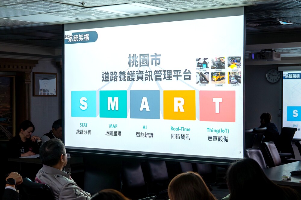 工務局表示,桃園市道路管養總長約1,277.3公里、面積約1,916.1萬平方公尺,規模為臺北市的1.23倍。因應龐大養護需求與人力資源有限,市府建置「桃園市道路養護資訊管理平台」,導入AI巡查、地圖整合與即時資訊管理,並以PCI(路面狀況指數)作為評估依據,推動道路管理數據化與科學化。