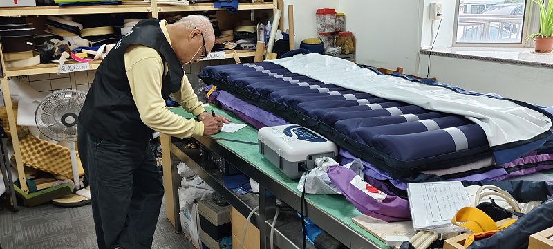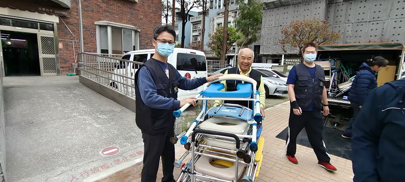 為充實弱勢家庭長照輔具資源,台中市南區輔具資源中心分享電動照顧床、拐杖等輔具給台中市慈濟環保輔具平台東大靜思堂據點,3月10日志工前往搬運,透過資源交流,攜手擴大對弱勢家庭的守護。
