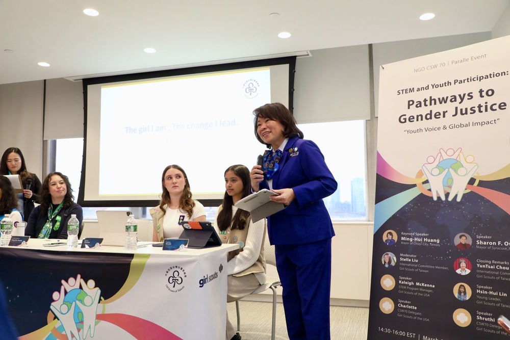 嘉義市政府教育處表示,每年三月,聯合國婦女地位委員會(UN Commission on the Status of Women,UN CSW)於美國紐約召開年度大會,今年已邁入第70屆。會議期間,非政府組織婦女地位委員會(NGO Committee on the Status of Women,NGO CSW)亦同步舉辦平行會議,成為全球民間團體交流倡議與推動政策的重要平台。本次嘉義市政府與財團法人現代婦女基金會及中華民國台灣女童軍總會合作舉辦兩場分享,向國際友人介紹嘉義市透過跨局處資源整合推動婦女福利與STEM教育的成果,進一步提升嘉義市在全球性別治理議題中的能見度,也為臺灣拓展國際交流空間。