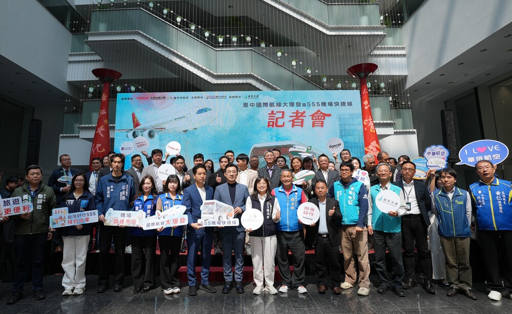 【記者彭勝郎台中報導】台中市接軌國際,城市交通服務邁向新里程!台中市政府觀旅局19日在市府文心樓1樓舉辦「台中國際航線大爆發暨555機場快捷線記者會」,正式宣告台中國際航線擴增至26條,範圍橫跨日、韓、越、港澳及東南亞等市場,並同步啟動「台灣好行555機場快捷線」公車,快速往返機場及市區,國際旅客出入中台灣將更加便利。立法院副院長江啟臣、立法委員羅廷瑋、睿奕交通股份有限公司董事長吳國正、交通部觀光署副組長陳軒弘、交通部民用航空局台中航空站組長鍾政淋、文化局長陳佳君、社會局長廖靜芝等人皆出席。